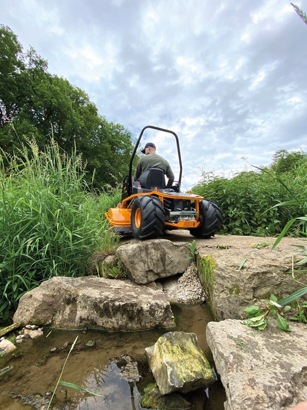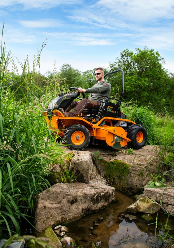 Uspravan položaj sedenja, idealno postavljanje na volanu i prostor za noge - za rukovaoce do 198 cm visine. Bočni štitnici štite rukovaoca od debelog rastinja i bodlji.